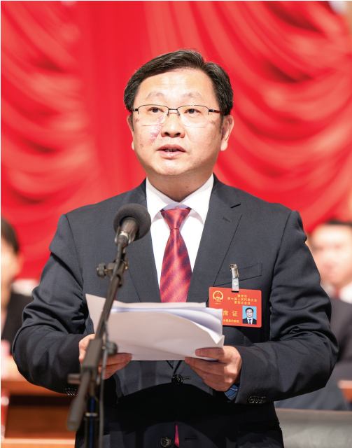 市委書(shū)記吳勁在市七屆人大四次會(huì)議第二次大會(huì)上講話(huà)。